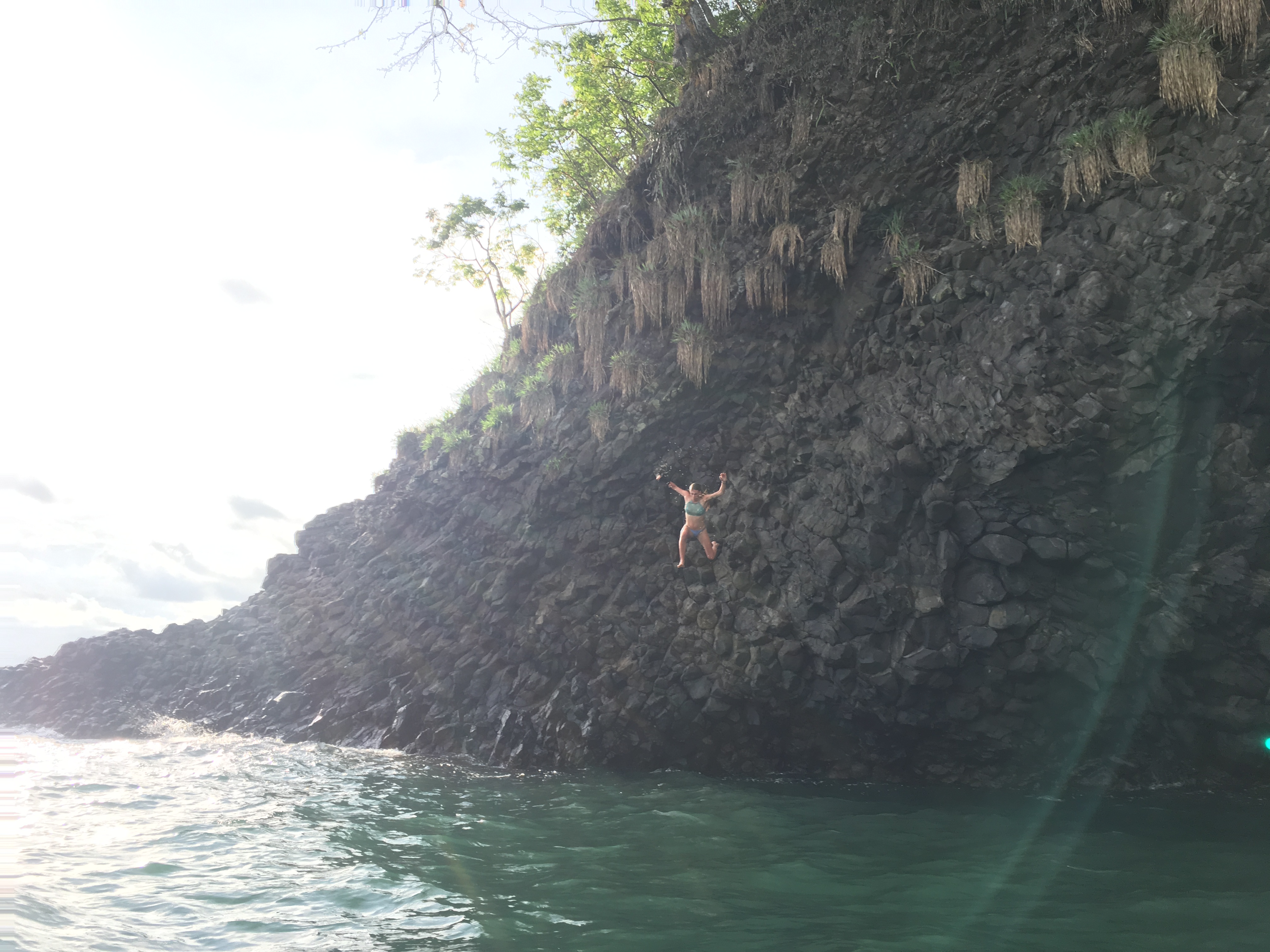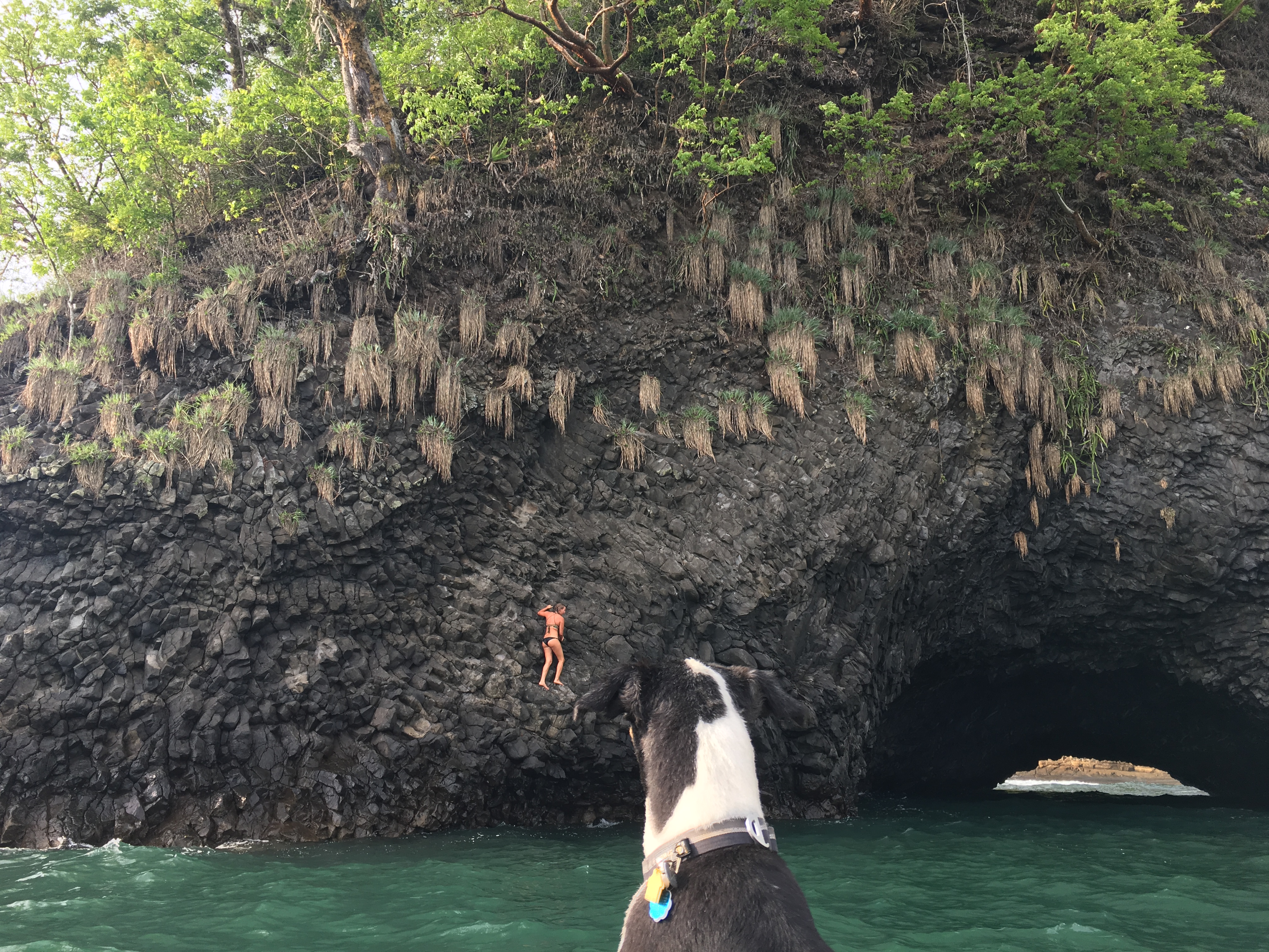 We could’ve stayed there all day if it hadn’t been for my broken wrist needing a break. We called our captain back over, Lela attacked us with kisses as we climbed back in and we slowly drove off with a line dragging behind for our catch. He took us over to a large rock arch where we climbed up and leapt off into the warm blue water. He slowly drove around the other large formations and gave us a chance to catch our dinner, Ella took control of the rod and reeled in a beautiful fish that would soon be used to make ceviche. We made it back to the hostel by sunset and watched the sun leave trails of bright oranges, pinks and yellows in the sky as it set past the horizon. Just as the sun was setting the full moon began to appear in front of our balcony and light the sky up. We went back down to the dinning table, played ping pong and devoured our big plates of ceviche, fried plantains, fish and a green salad. The next morning we rose before the sun, loaded onto the boat and headed back into the mangroves to catch a taxi into the city to rescue Dory. Little did we know how torturous this day would be after such a magical weekend.